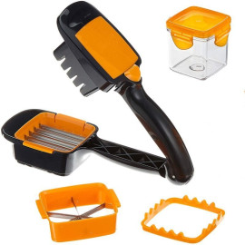 Mini Fatiador 5 Em 1 Frutas Verduras Legumes Descrição: As diferentes inserções da lâmina podem ser combinadas, cortar fatias grossas, fatias finas, cubos e sextos. Basta inserir o alimento, pressioná-lo e tudo é cortado perfeitamente em segundos. Sejam alimentos moles ou duros, como abobrinha, tomate, cogumelos, ovose muito mais. As lâm..